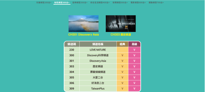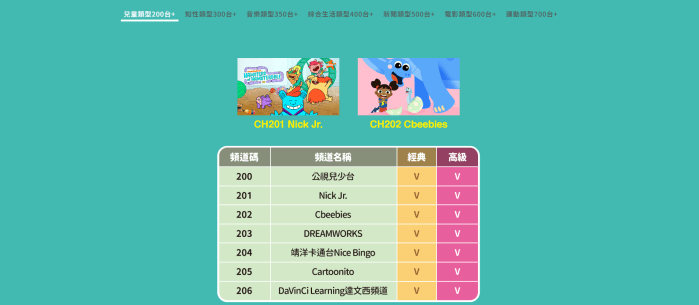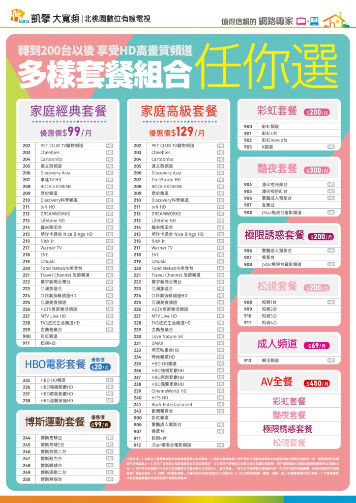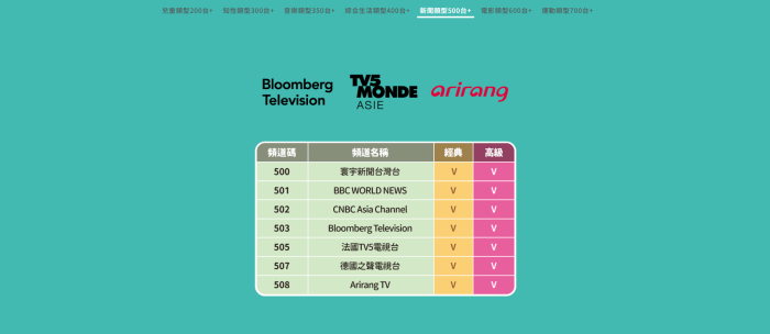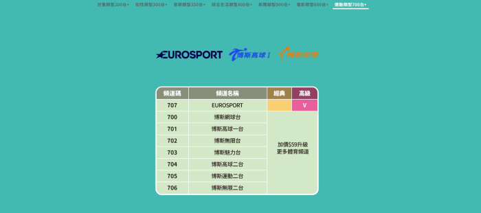 | HBO電影套餐 | HBO HD、HBO Family 等精選電影頻道,讓您盡享影院級視覺體驗! | $200/月 |